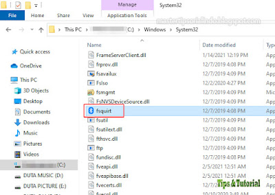 - Di lokasi ini, temukan file bernama fsquirt dan Copy file tersebut.