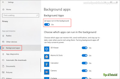 - Di sini, anda akan melihat opsi Let apps run in the background untuk mengaktifkan aplikasi agar berjalan di background.