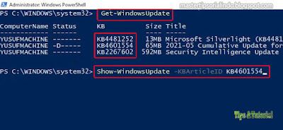 - Kemudian masukan perintah berikut dan tekan Enter untuk menampilkan Windows Update. Ganti KBNUMBER dengan nomor update yang anda coba tampilkan.